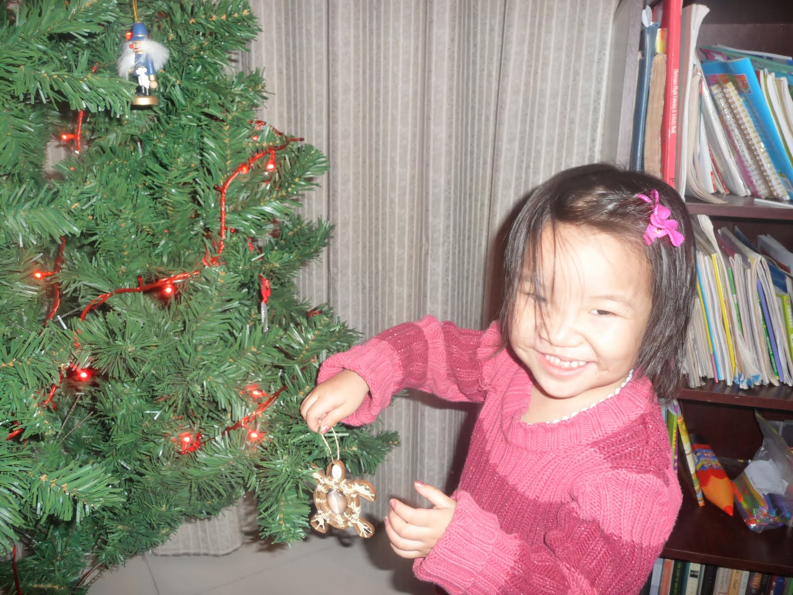 wow, is it easy to fall behind in posting stuff on your blog when you have 4 kids!!! Well I must say so many times I look at Halle and think "wow, i can't believe we finally have her!" it just blows my mind! Since having Halle we've decorated our Christmas tree which she adored doing!, decorated uncle josh's semi-christmas tree which she also loved doing, she's been introduced at church and likes Sunday School, is finally used to our cats and doesn't cry every time she sees them, and last night she finally slept through the night! (she likes to wake up like 4 times a night to check on dave and i). we're hoping this trend continues and she'll continue to feel nice and secure. We got our Christmas card pictures taken and they came out pretty well. She has this lovely habit of smiling really really big when we say "cheese!" Min Hao has his first loose tooth which he is ecstatic about and shows us all the time, and overall Marissa and DJ are doing a wonderful job transitioning. There are of course difficulties and the occasional "i don't like her anymore!" towards Halle. Thankfully she doesn't understand it yet :) We're all really looking forward to grandma and grandpa coming at Christmas and counting down the days until break! We continue to feel so blessed by adoption. Our little Halle is so sweet, funny, smart, and all we could've asked for. We are blessed beyond measure!